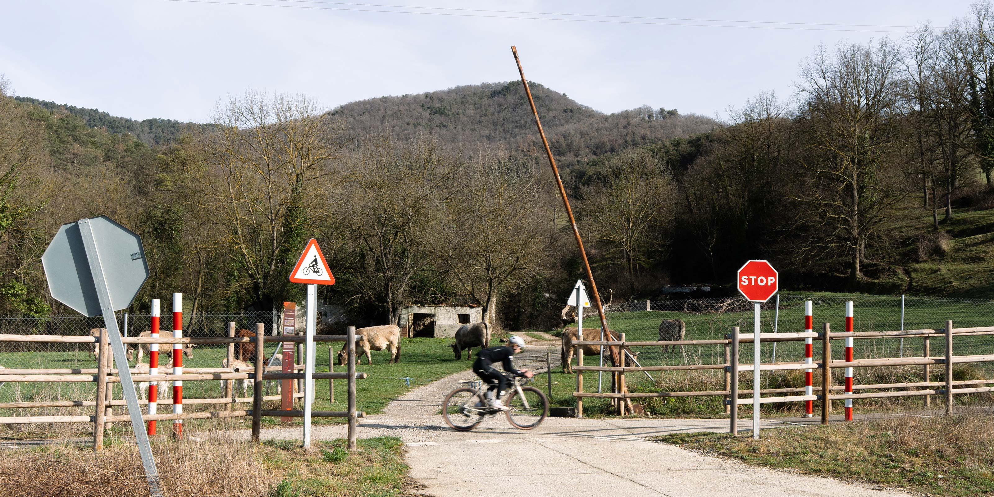 “There's one section that's really off-road, but it's less than 5k,” Millie says. “The rest is bike paths, via verde — super nice — or road. In general, it's a really good route to go fast.” Ben knows most of it from years of riding around Girona — in dry conditions, almost all of it is road-bikeable. But they chose a day after heavy rain. Sections of the via verde had been washed out by a diverted river.