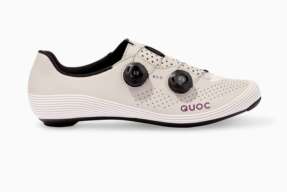 A wave-print design flows across the upper, adding a subtle yet distinctive flair, while the wrap-fit construction locks the foot in place for maximum efficiency. Ventilation is optimised with airflow channels in the sole and perforations in the upper, keeping feet cool on long rides. Available in White and Chalk colourways, the shoe merges QUOC’s signature elegance with modern detailing. Whether racing, training, or simply riding socially, the M3 Sport is at home where style, comfort, and performance intersect.