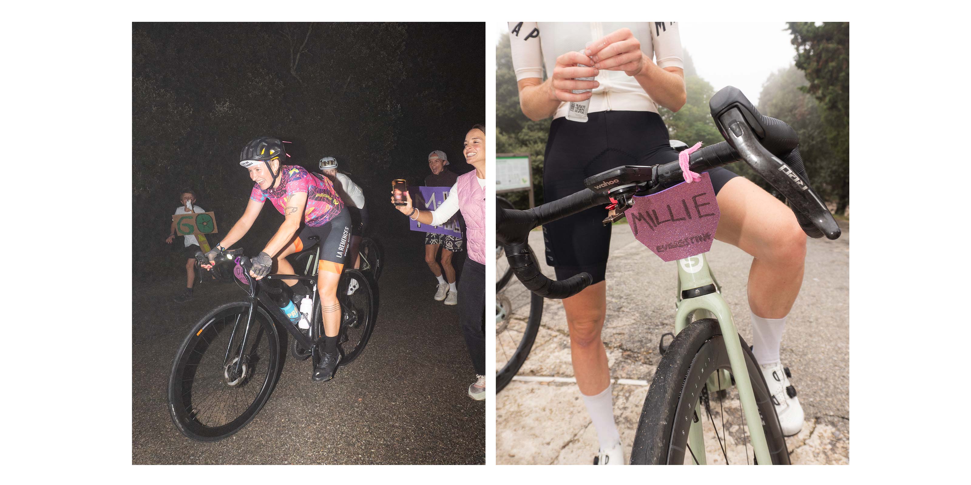 It was the best feeling. The four of us rode together the entire time, and we were surrounded by supporters all day and night—some joining for a climb, others bringing snacks and pizza, or just meeting us at the summit with hand-painted signs for a morale boost. It was the strongest community of women I have ever felt. As someone who usually embarks on these crazy challenges alone, having that female company the whole time made it so, so special.