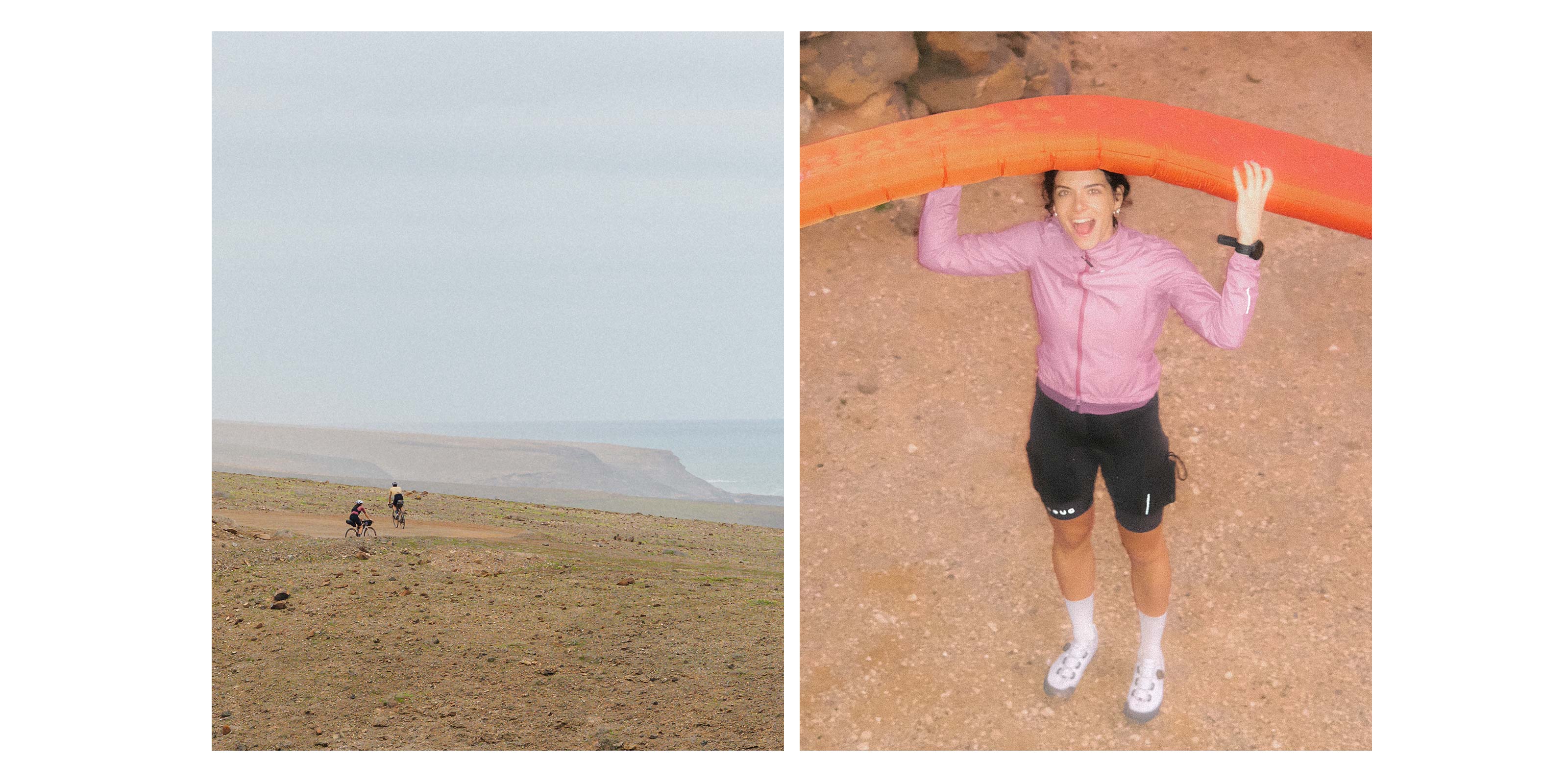 Riccardo and I are very different travellers. He maps every kilometre. I lose myself in the scenery. He’s not much of a talker — I talk a lot. But somewhere between his structure and my daydreaming, we find a rhythm. It’s been like that since we met, seven years ago, drawn together by a shared love for sport and movement. He was a national-level athlete in Italy; I played semi-professional handball in France. We were both wired for competition. But over the years, that restlessness shifted. The races gave way to longer missions, first in the Pyrenees near our home in the south of France, then further — wherever we could find a route worth riding.