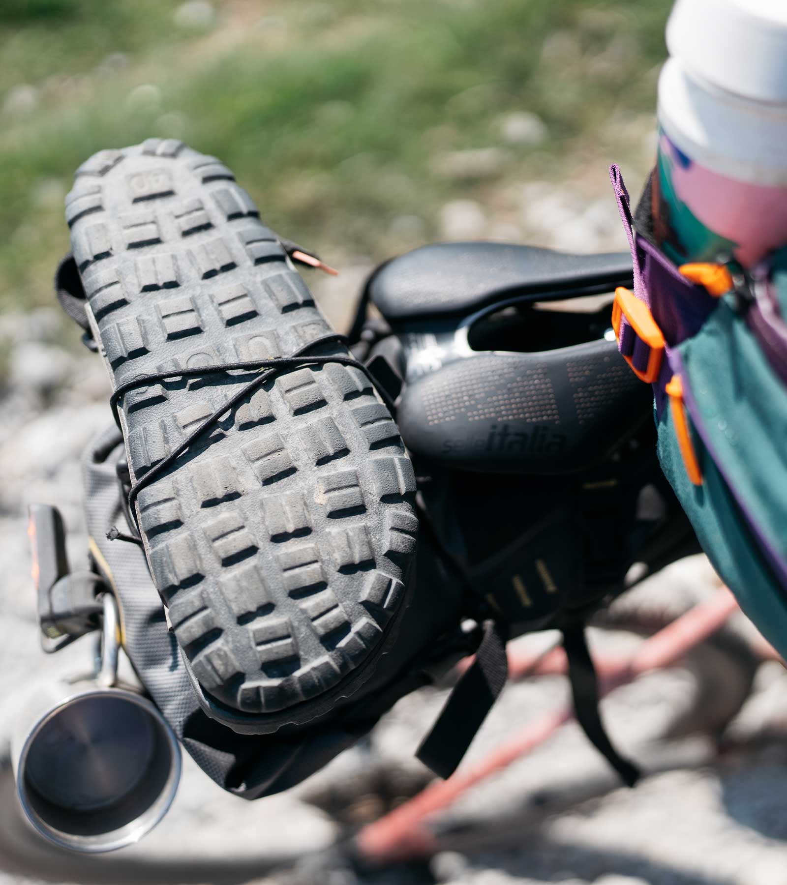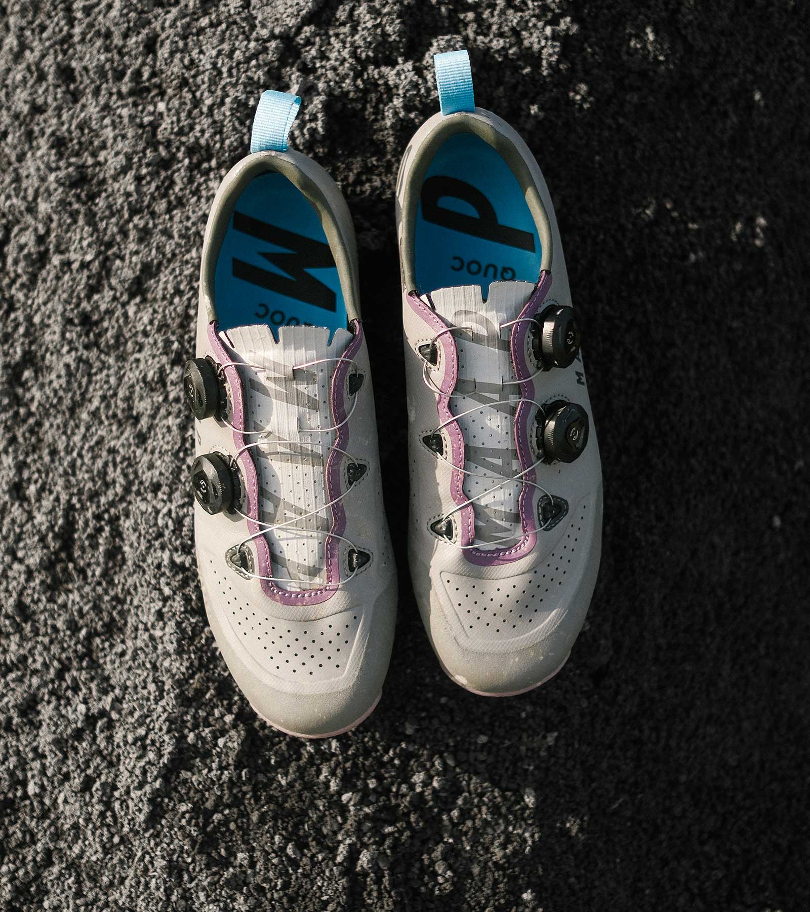 Honestly, they’re the most comfortable shoes I’ve ever ridden in — and they still look great, even after a long trip. What I love most is how versatile they are: perfect for performance rides but also for big bikepacking adventures. A couple of years ago, I did a collaboration with Le Club in Montreal, and QUOC was kind enough to lend me a pair of Mono II’s to paint. Since then, I’ve stuck with them — they’re the only shoes I ride in now.