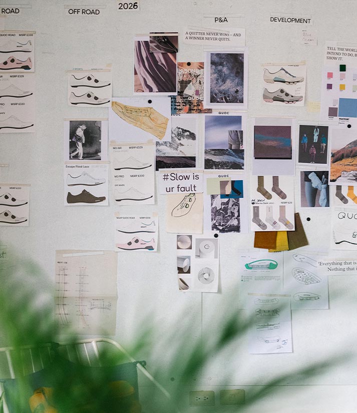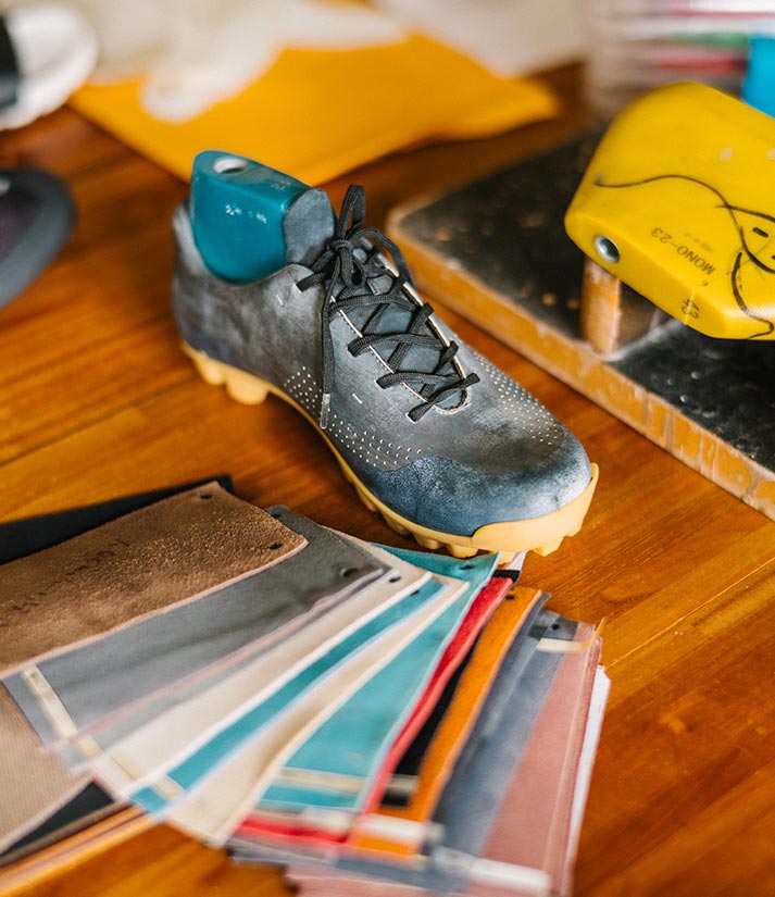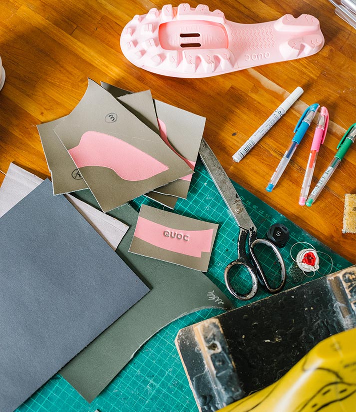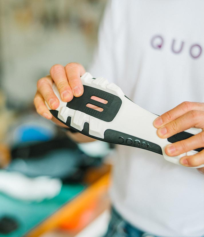 QUOC’s hands-on approach extends to every component of the shoe. Our innovative outsoles are moulded from clay, with every contour and lug carefully designed, carved out and 3D modelled before transferring to metal moulds for production.