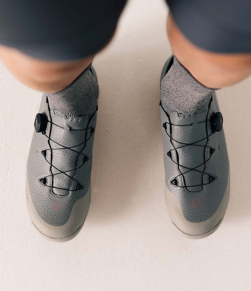 Designed for and by gravel cyclists, Gran Tourer II takes the popular silhouette of QUOC's best-selling Gran Tourer Lace, and combines it with a stiffer sole and in-house developed dial system technology. With a supple, foot-hugging upper, vibration-absorbing insoles and optimally padded lining, the shoe offers unyielding comfort, evenly distributing pressure and eliminating hotspots on and off the bike.